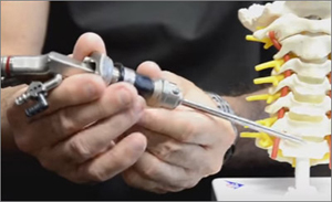 In some cases — especially those involving the lumbar spine — approaching the spine from the side of the body results in reduced pain, due to the limited amount of muscle tissue blocking the way. This approach is typically performed with the patient on his or her side. Then, a tubular retractor docks on the side of the spine to enable access to the spine’s discs and bones.
